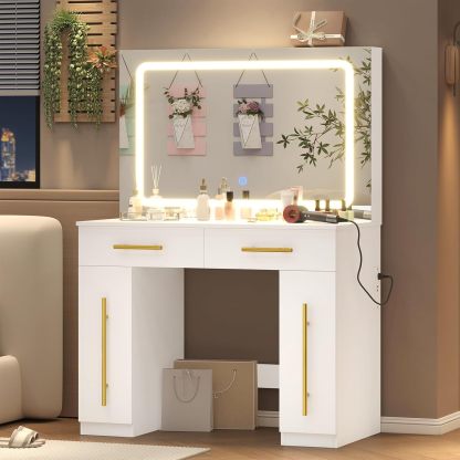 Large Vanity Desk with Charging Station, Storage Drawers & Cabinets